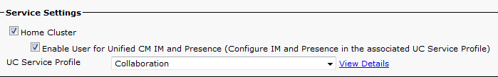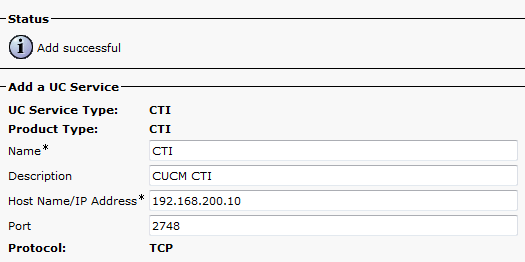 User Management – User Settings – UC Service – Add Cti, Directory & Presence