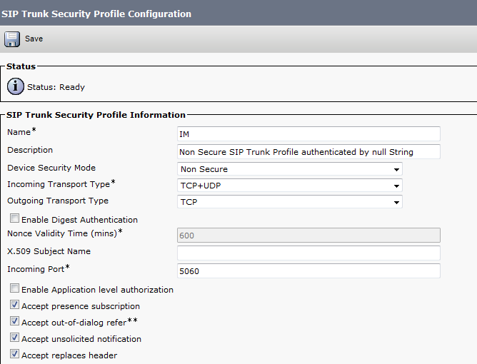 System – Security – SIP Trunk Security Profile – Copy the Non Secure SIP Trunk Profile –