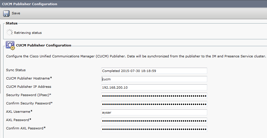 Put the CUCM name and IP Address and put the username and password for AXL Admin
