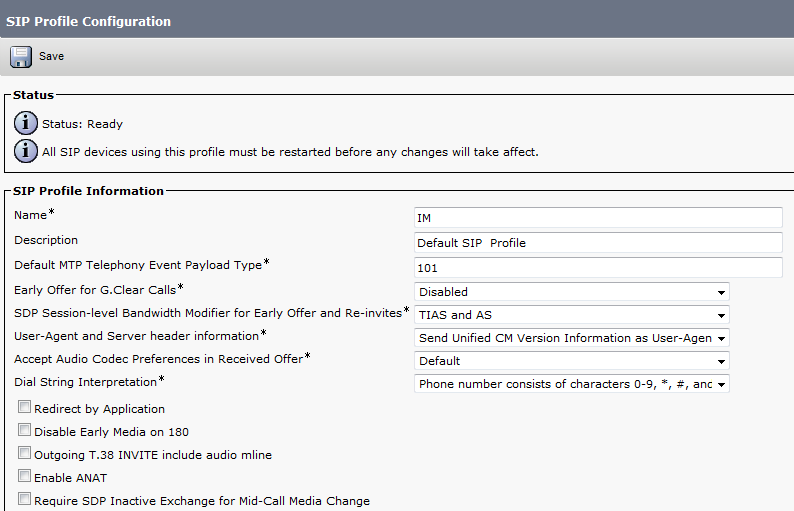 Device – Device Settings – SIP Profile – Copy the Standard SIP Profile